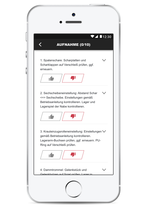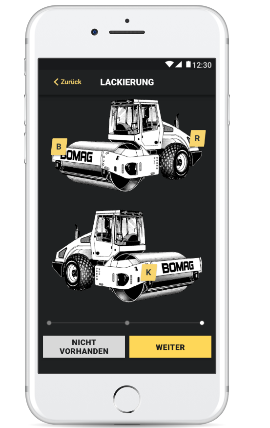 Our client BOMAG requested us to solve this problem by creation an Inspection app, where machine trade-ins undergo a standardized process and the key aspects of each specific machine type receive the attention they need.